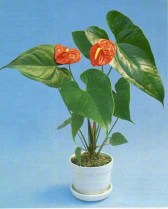 Csillogó piros fellevelének köszönhetően a legfeltűnőbb szobanövények egyike. Ez az egzotikus növény csaknem egész évben virágzik.