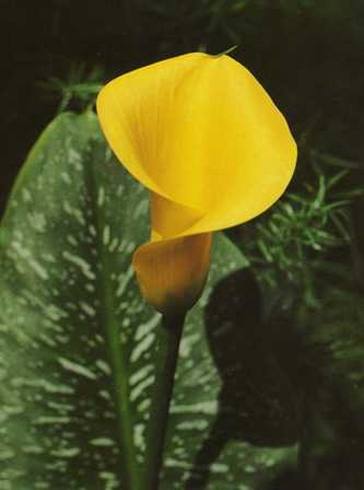 A Dél-Afrikából származó sárga kála a legkülönlegesebb és legmutatósabb virágok egyike, de gondozása sok türelmet igényel. Legjobban a télikertben érzi magát, mert nagyméretű cserepe nem fér el az ablakpárkányon.