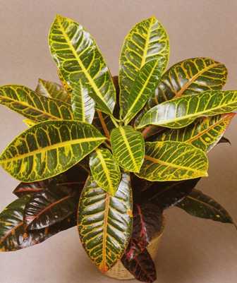 A tarka csodacserje az egyik legszebb szobanövény. A levelek színe változatos: sárga, halványzöld, narancsszínű, piros és sötétlila árnyalatúak lehetnek- gyakran egyetlen levélen.